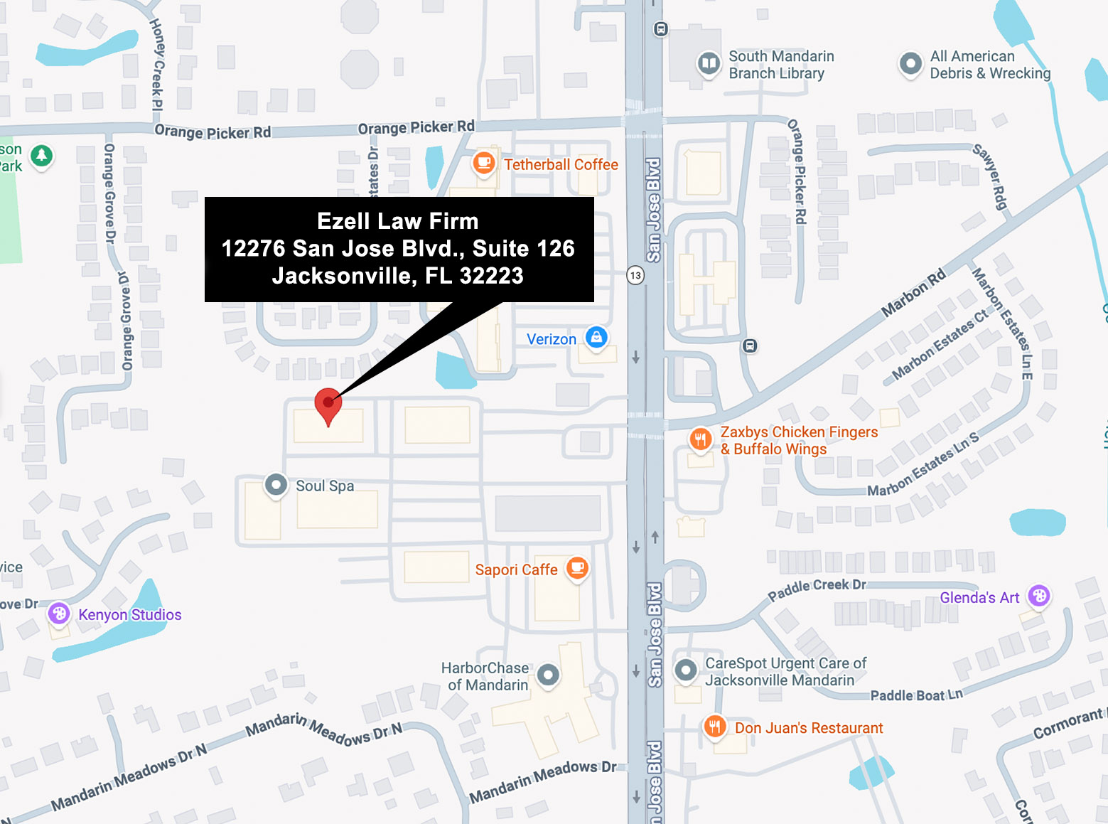 For additional information on our legal services or to make an appointment, contact us today. 904.432.3200 12276 San Jose Boulevard Suite 126 Jacksonville, FL 32223 United States view on map Make a Payment Online Payment Coming Soon
